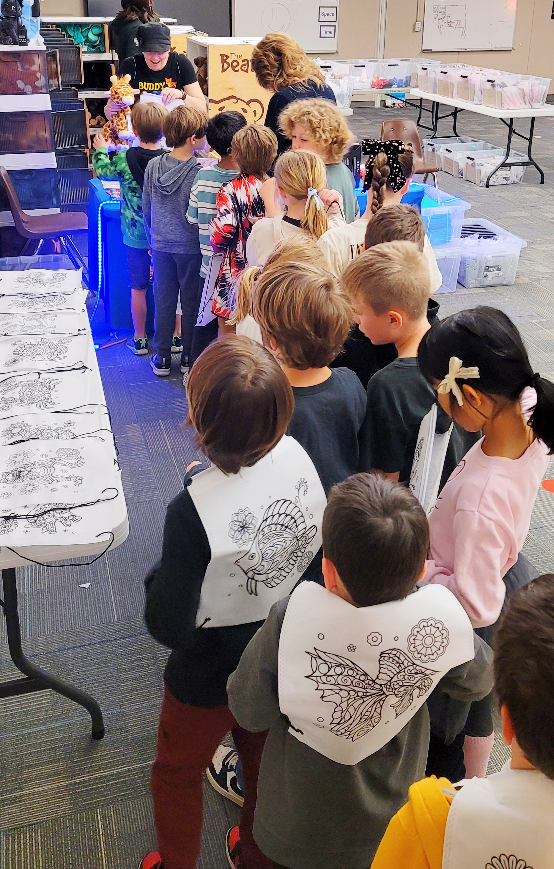 It’s a fun hands-on event where students receive their prizes and help create their own stuffed animal using a professional stuffing machine—similar to a workshop experience.